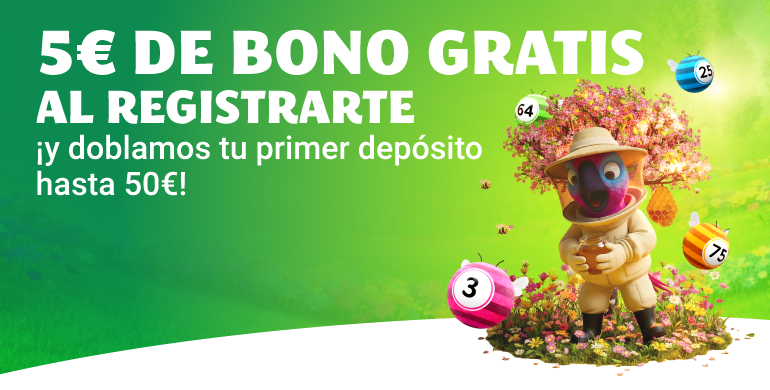 ¡Tal y como lo lees! Recibe 5€ de bono bingo gratis al completar tu registro.
